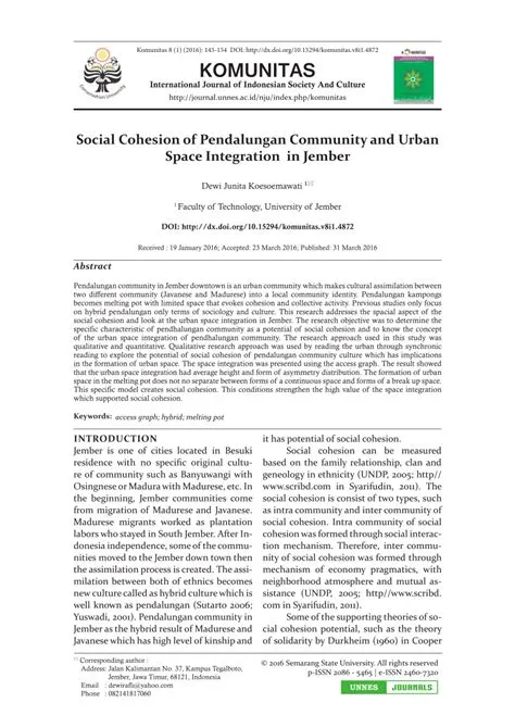 (PDF) Social Cohesion Potential of Pendalungan Communities and Urban ...
